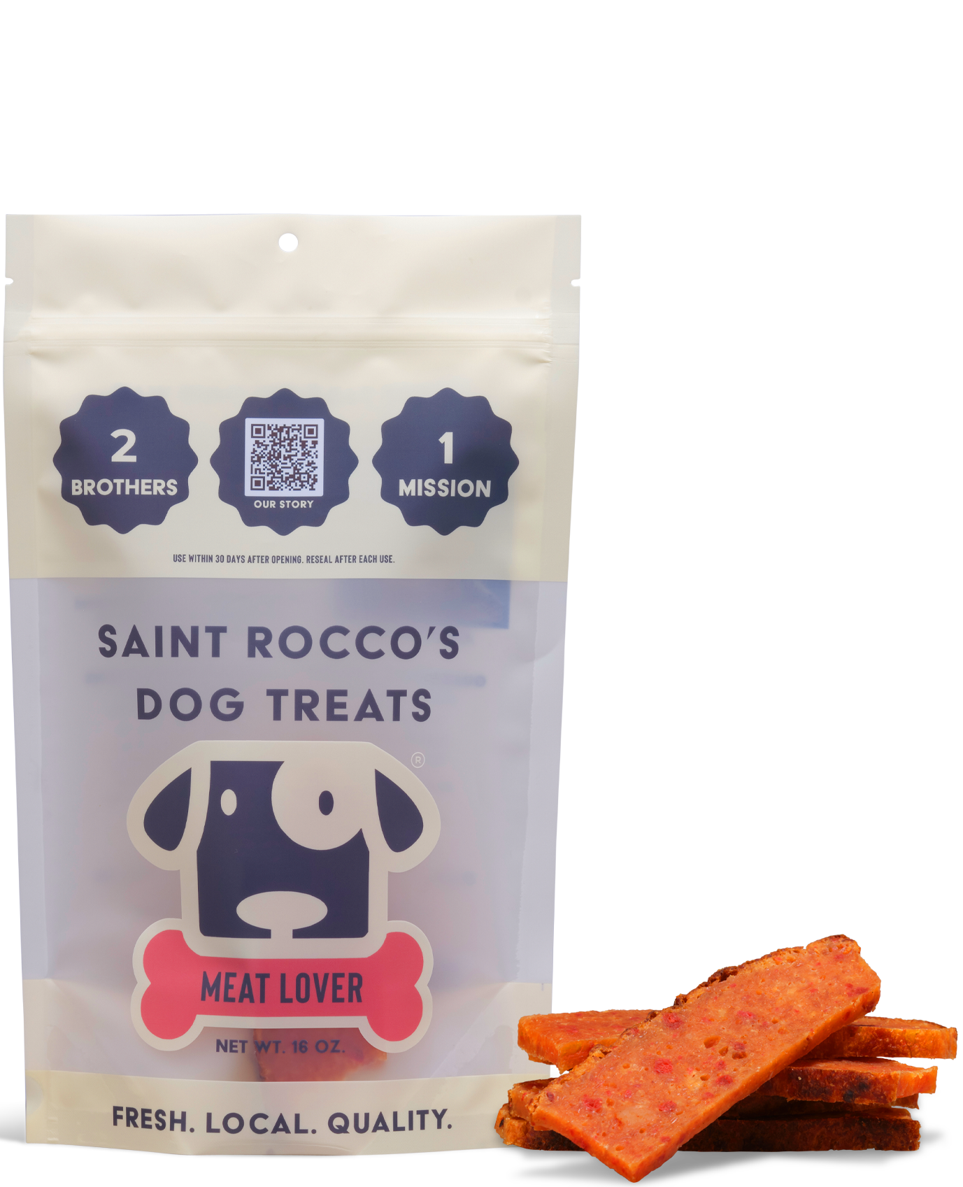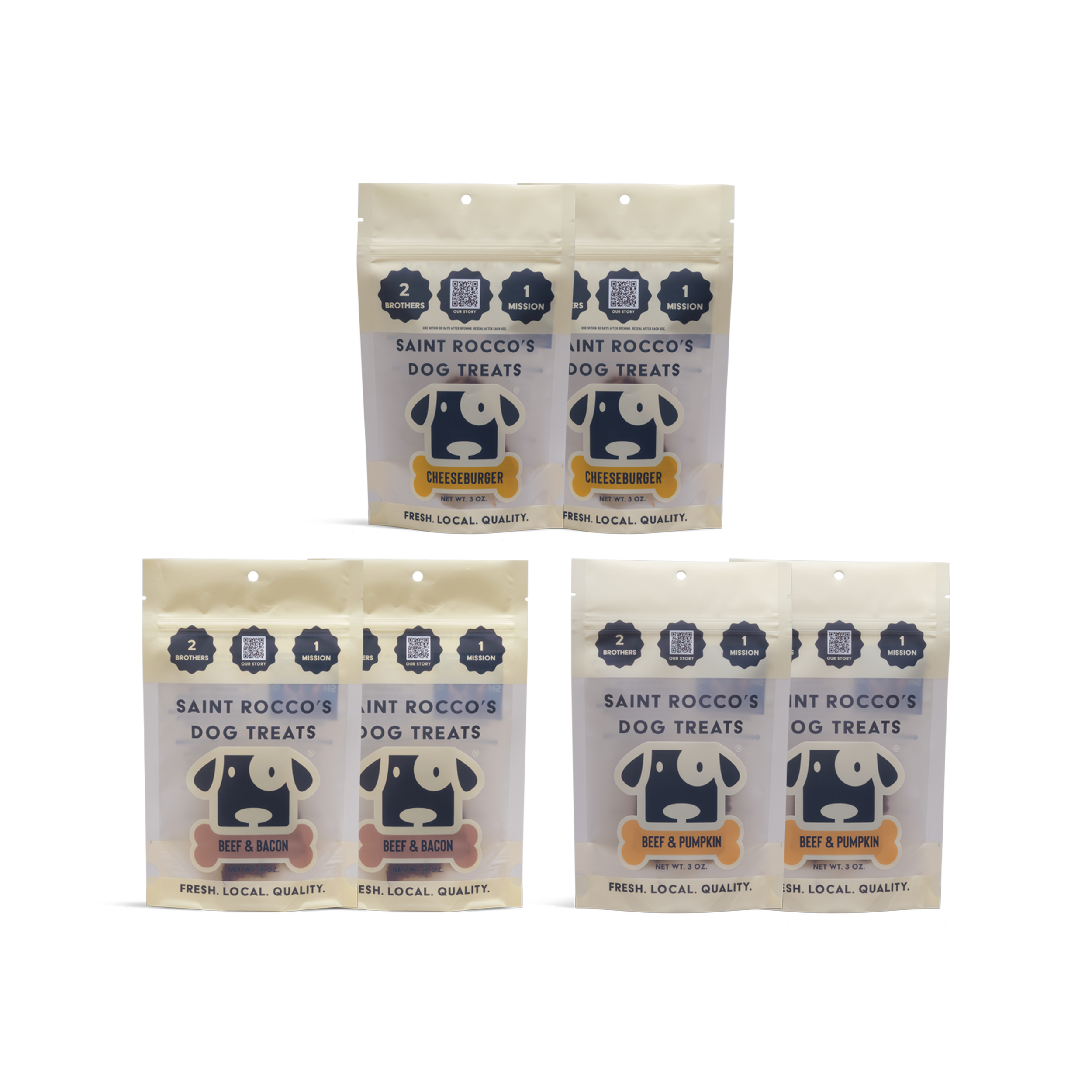 Growing up, Kolby and Kaleb Rush saw their Grandpa & Dad work as entrepreneurs in the dog treat industry. Driven to follow in their footsteps they created Saint Rocco's.