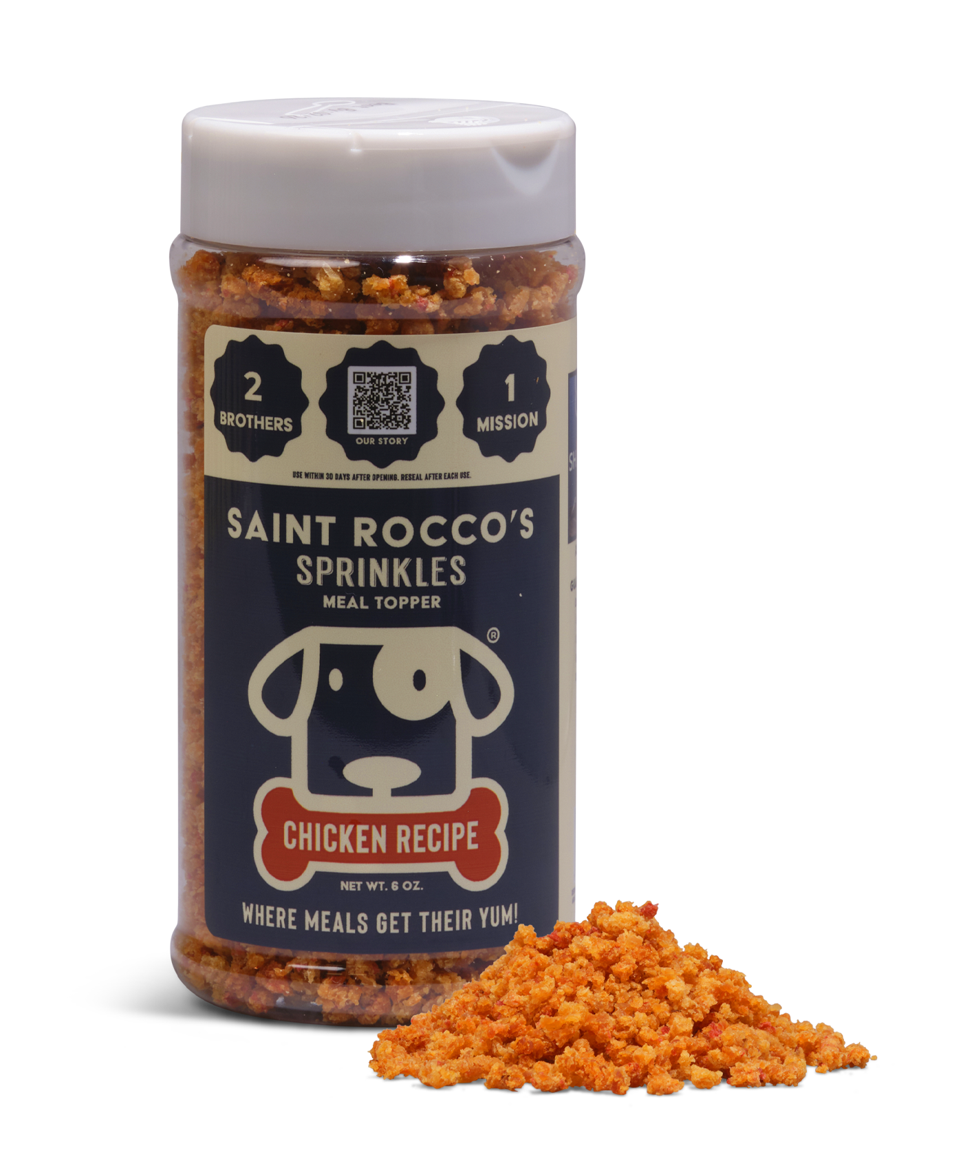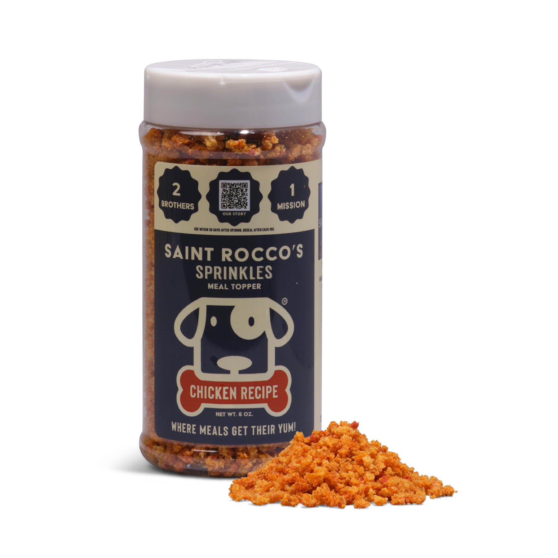 We only use human-grade chicken breasts chicken sprinkles. This combination of premium sourcing and flavor profile is irresistible for dogs of all ages and sizes. This guarantees your dog is getting the best natural health benefits that premium chicken has to offer!