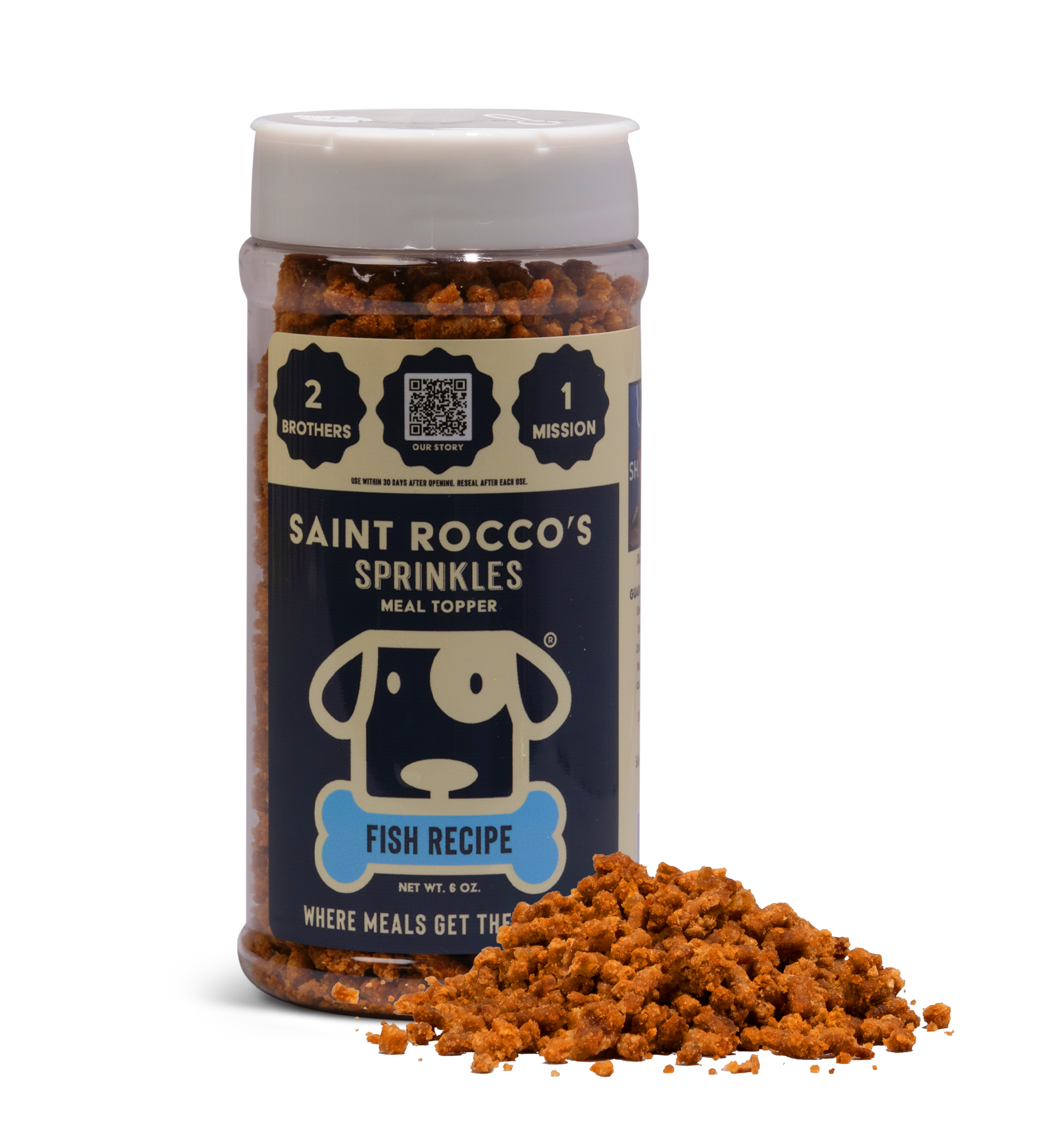 Hand-crafted using wild-caught alaskan salmon and cod. Our fish sprinkles are fresh-baked daily using our 48-hour artisan process. The result is a meal topper that finally impresses your picky eater. Our Fish Sprinkles will guarantee your dog enjoys their meal; time and time again!
